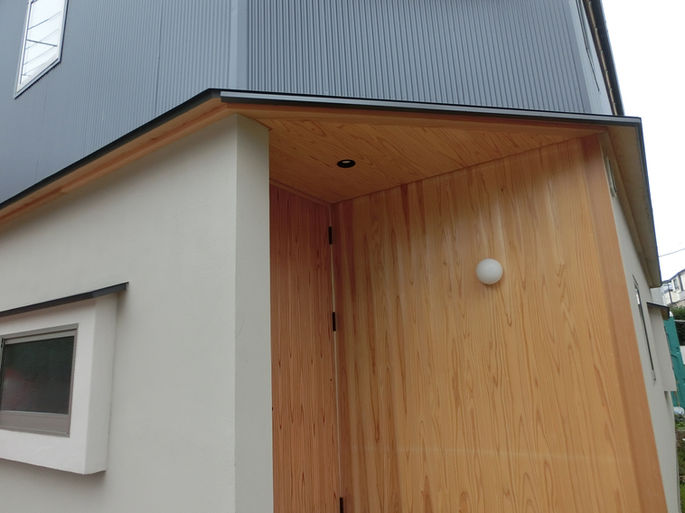 町工場街にある 振れ隅木屋根の家 隅切りコーナーな建物のロケーションを生かした形。